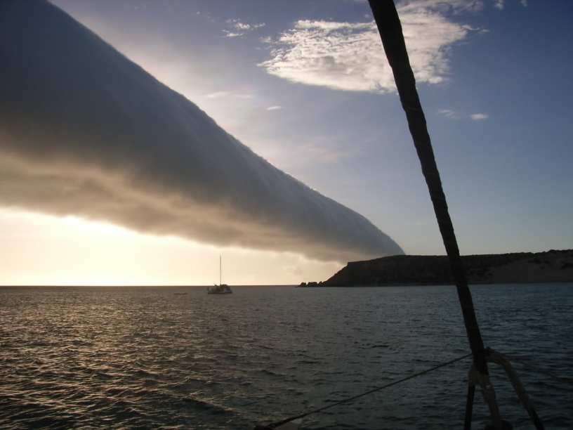 Die sogenannte „Morning Glory Cloud“ oder auch „Roll Cloud“ ist eine walzenförmige, scheinbar in sich rotierende, schnell wandernde Wolke, die ein bis zwei Kilometer breit und mehrere hundert Kilometer lang sein kann. Dieses beeindruckende Naturschauspiel ist äußerst selten und kommt nur an der Nordküste Australiens im Golf von Carpentaria regelmäßiger vor, vor allem im Frühling früh morgens. Denn hier treffen feuchte Seewinde von zwei Seiten aufeinander und erzeugen eine aufsteigende Luftbewegung: Feuchte Luft kondensiert an der Spitze des Wellenkamms und bildet die Wolke, die mit dem vorherrschenden Ostwind nach Westen geschleppt wird. An der Vorderseite kommt es zu starken Aufwinden, während auf der Rückseite turbulent absinkende Luft herrscht: Beide zusammen lassen die Morning Glory augenscheinlich rotieren.